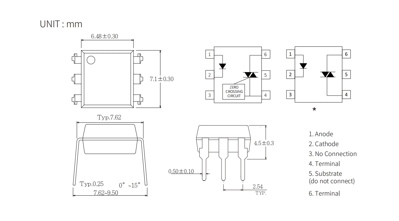 | Product | Package | size(LxWxHmm) | VF(V) | VDRM(Max) (V) | VTM(V) | VINH(V) | IT (rms)(mA) | IFT(mA) | Topr (Min) (degC) | Topr (Max) (degC) | Viso (Vrms) |