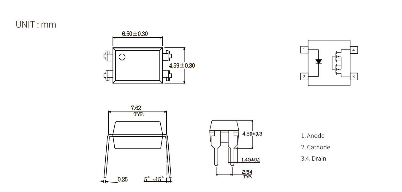 • PhotoMOS VL=60V輸出端擊穿電壓光耦