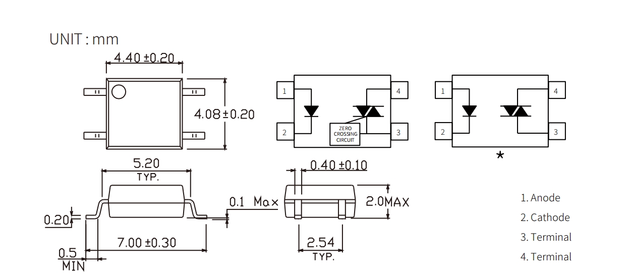 | Product | Package | size(LxWxHmm) | VF(V) | VDRM(Max) (V) | VTM(V) | VINH(V) | IT (rms)(mA) | IFT(mA) | Topr (Min) (degC) | Topr (Max) (degC) | Viso (Vrms) |
